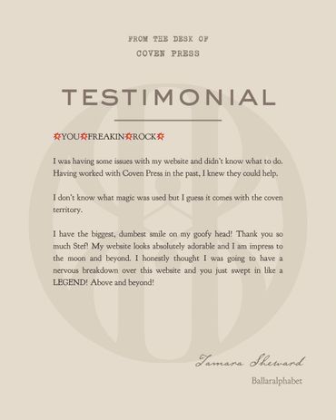 Coven Press pays deep respects to the traditional custodians and original storytellers of the lands on which we live and work, the Wadawurrung and Dja Dja Wurrung people of the Kulin nation, and recognise their continuing connection to the lands, waterways and skies. We acknowledge the Aboriginal history of storytelling and respect the privilege to contribute to this ongoing tradition.
